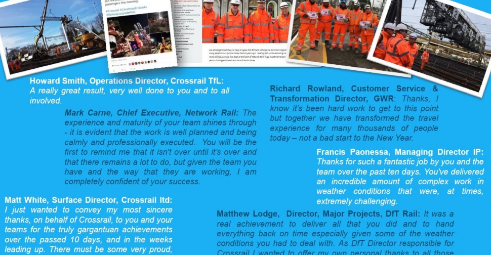 We recognise that a great deal of hard work and long hours has gone into this, it’s much appreciatedappreciation for all the hard work teams have put in to support the Christmas works delivery.